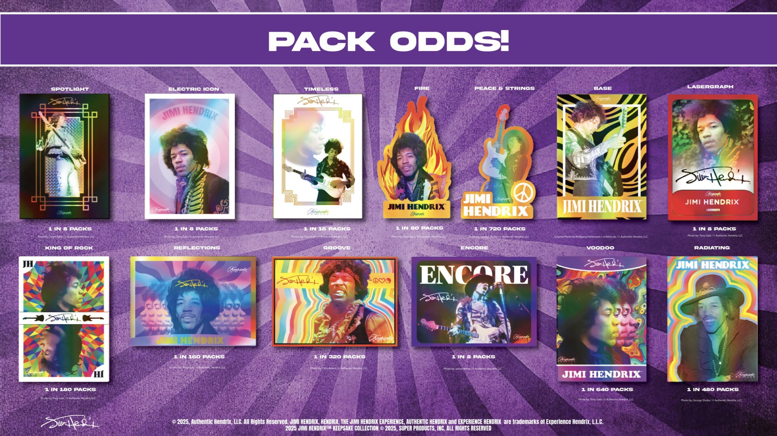 - (2) Jimi Hendrix Keepsake Relic Card in Every Box!