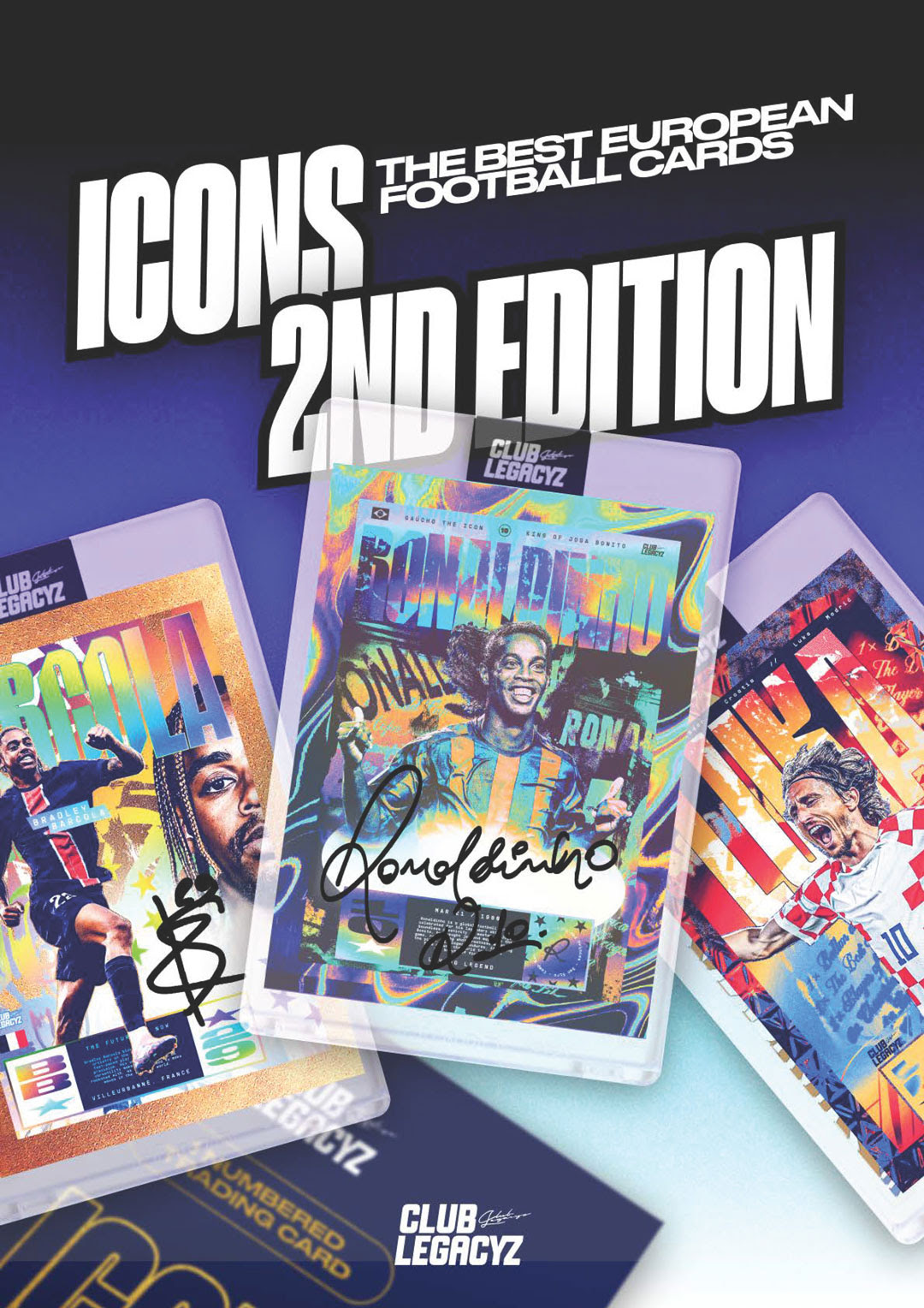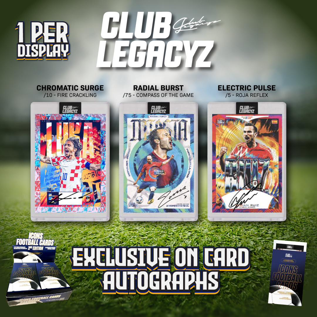 Club Legacyz Icons Second Edition brings premium Soccer cards that are really individual works of art, each one a sequentially numbered edition from 1 of 1’s, and no version having a parallel numbered higher than 200.